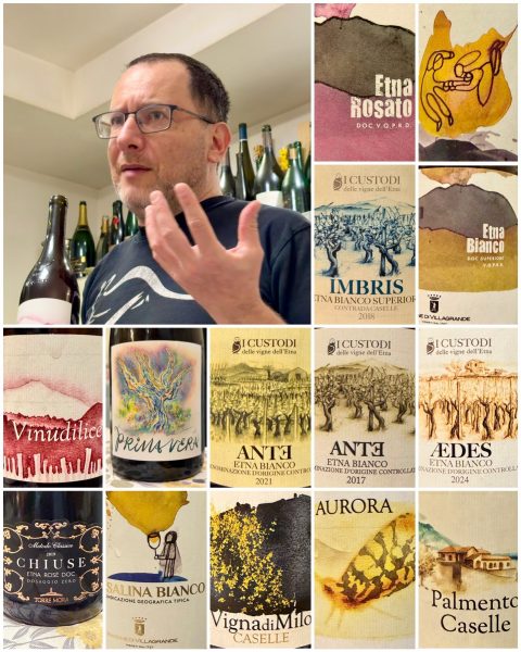 מרבית היינות מבוססים על הזן הלבן המזוהה ביותר עם האתנה, Carricante, שכנראה אין מתאים ממנו לגידול על אדמה געשית. בדרך כלל מצפים מיינות כאלה להיות מאד מינרליים, אבל היינות שטעמנו היו עשירים בפרי, בעיקר פרי הדר, תפוח עץ ירוק ואגס, מלווים במינרליות מאופקת ברקע, חומציות מודגשת, מעט פלינטיות, וסיומת קצת מעקצצת. לא אכנס לניתוח של כל יין, חיים שרגא שישב מולי , בוודאי טוב ממני בזה ושווה לקרוא את רשמיו. כבר התארחתי אצל ג׳ון ולנה לא פעם ואני חייב להחמיא ליסודיות ולעומק הבלתי נדלה שלהם, לגבי כל נושא שהם מארגנים לטעימה. הרב שיח איתם ועם אורחים נוספים במהלך הטעימות מעצים את החוויה, מענג ומעשיר ידע.