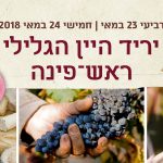 מאי 15, 2018 7:28 pm Leave your thoughtsיריד היין המסורתי יתקיים זו הפעם השמינית במושבה ראש פינה. ביריד יציגו את יינותיהם מיטב יקבי הגליל והגולן . כל...